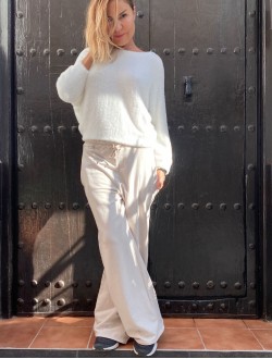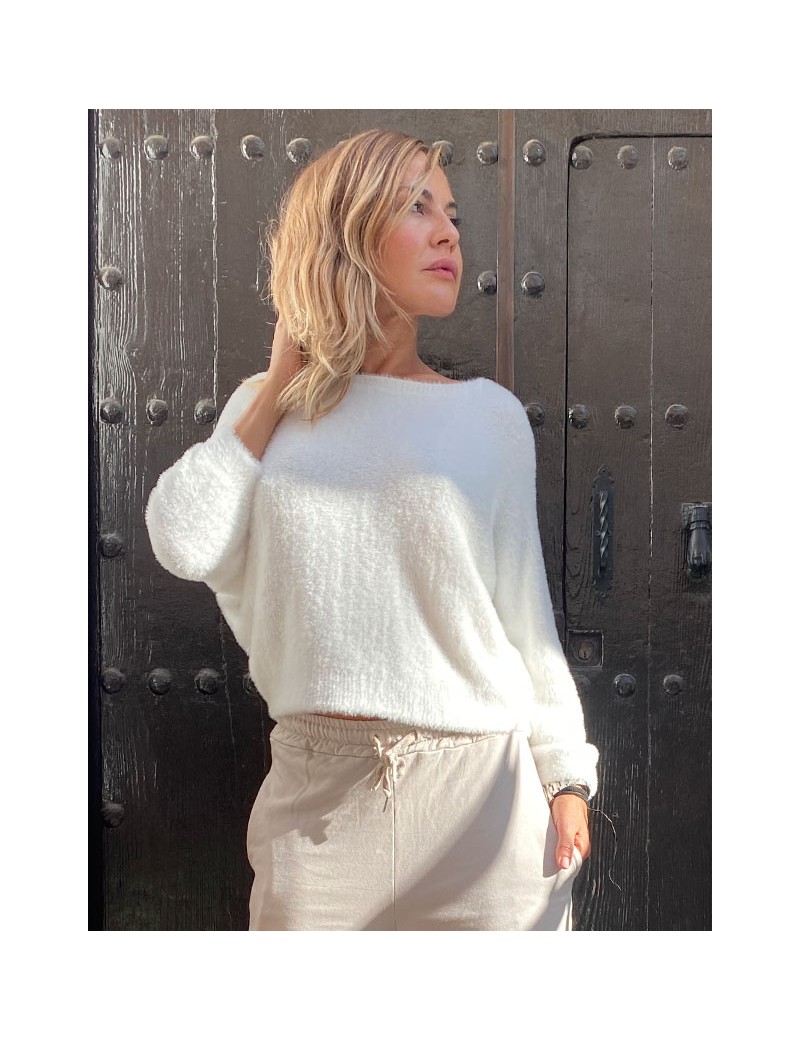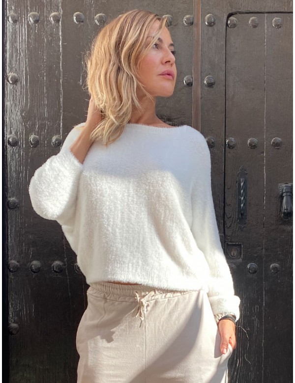Jerseys cortito de manga larga efecto angora muy suave y calentido, en color blanco roto.