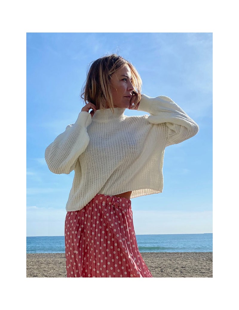 Jerseys de punto con cuello alto y mangas de globo con puños grandes, Precioso.