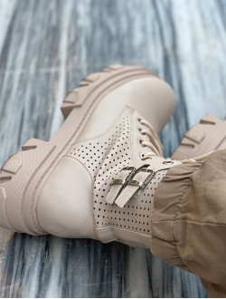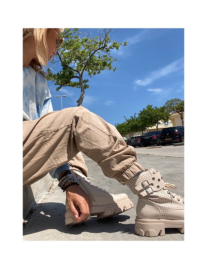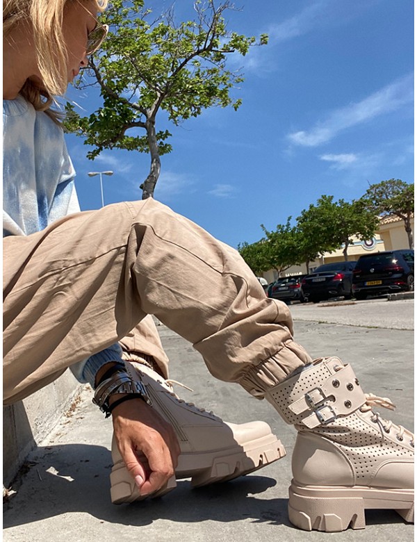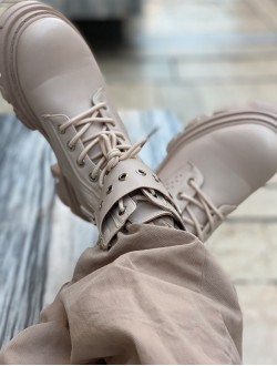 Botas color crema, súper de moda con rollazo y muy cómodas con cremallera lateral y suela de sierra, imprescindibles esta temporada.